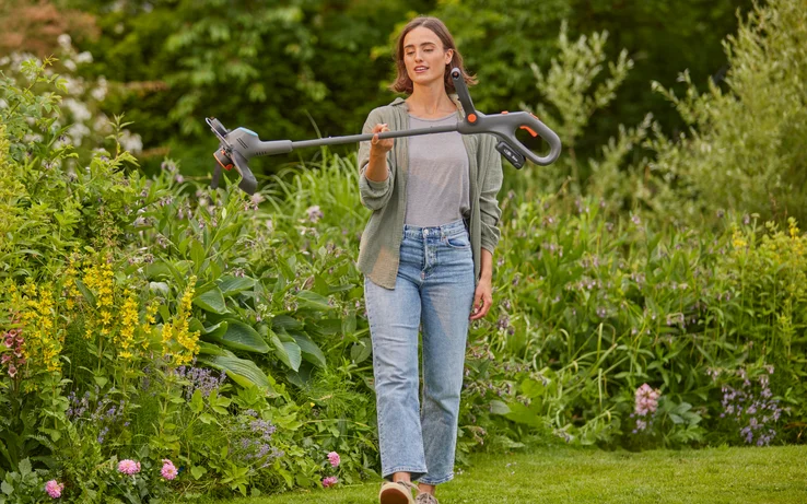 Det här sladdlösa verktyget är lätt och smidigt att manövrera och är enkelt och bekvämt att bära även i stora trädgårdar. Trots sin låga vikt har den tillräckligt med trimningskraft för att klara gräsmattor i alla former och storlekar, medan det justerbara växtskyddet skyddar dina blommor, träd och buskar.