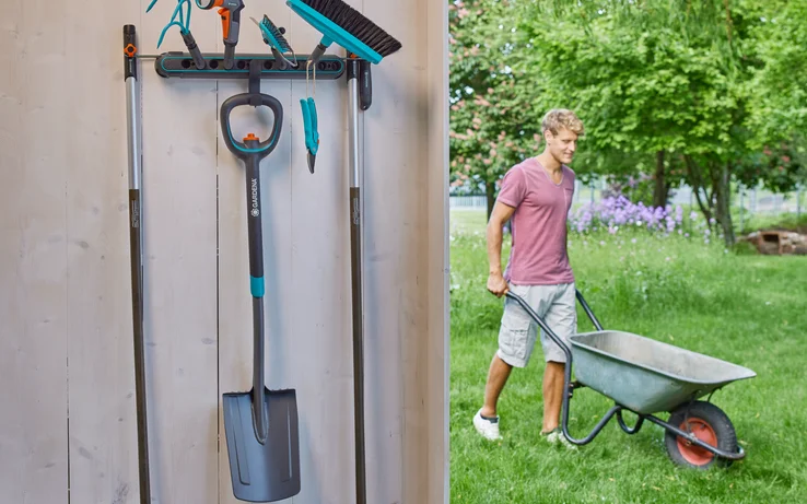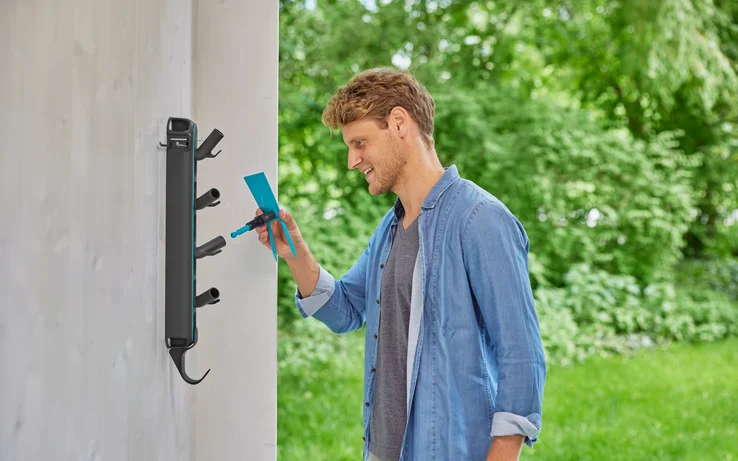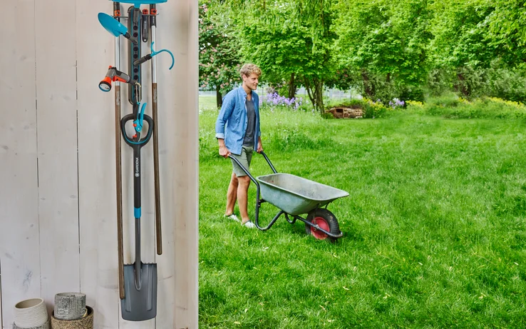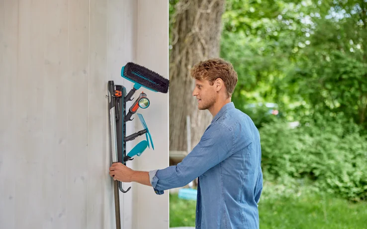 Mit der GARDENA combisystem-Geräteleiste Flex kannst Du Deine GARDENA combisystem Geräte und Stiele bequem und platzsparend aufbewahren. So sorgst Du für eine optimale Aufbewahrung und kannst Unordnung in Deinem Schuppen vermeiden. Die Geräteleiste Flex ist mit vier Gerätehaltern ausgestattet, inklusive eines kleinen Hakens zum Aufhängen von Scheren oder Kleingeräten. Die Gerätehalter sind flexibel sowie frei steckbar und Du kannst sie in 30°-Schritten rotieren, um die Position an Deine Bedürfnisse flexibel anzupassen. Die Stecker eignen sich für die Lagerung Deiner Geräte aus dem GARDENA combisystem wie auch aus dem Original GARDENA System. Mit dem ebenfalls enthaltenen Universalhaken bewahrst Du Gartengeräte wie Spaten auf. Du kannst die Geräteleiste sowohl vertikal wie auch horizontal ausrichten, um den Platz an Deiner Wand optimal zu nutzen. Zudem bietet die Geräteleiste dank der Metallbügel Platz für bis zu vier Stiele aus dem GARDENA combisystem. Wenn Du noch mehr Geräte und Werkzeuge lagern möchtest, erweiterst Du die Leiste mit dem Einzelstecker Flex (Art.-Nr. 3507-20). Stiele, die nicht dem combisystem angehören, können mit dem Stielhalter Flex (Art.-Nr. 3508-20) aufbewahrt werden. Die combisystem-Geräteleiste Flex wird von GARDENA mit 25 Jahren Herstellergarantie nach Registrierung unter gardena.com/registration innerhalb von 3 Monaten nach Kauf unterstützt. Lass Deine Werkzeug-Familie wachsen. GARDENA combisystem. Auswechselbar. Langlebig. Für alle Gartenarbeiten.