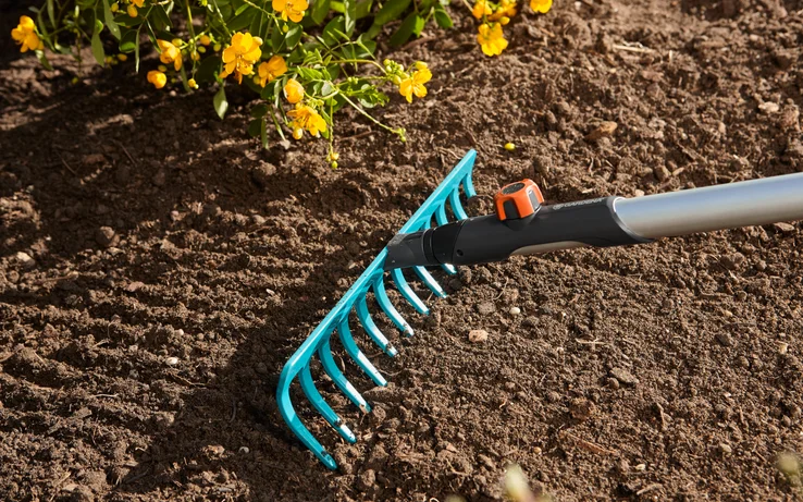 Der GARDENA combisystem-Rechen ist ein praktisches Vielzweckgerät und eignet sich optimal zum Rechen, Einebnen und zur Bodenbearbeitung. Der Rechen hat eine Arbeitsbreite von 30 cm (mit 12 Zinken). Die Garantiezeit beträgt 25 Jahre.