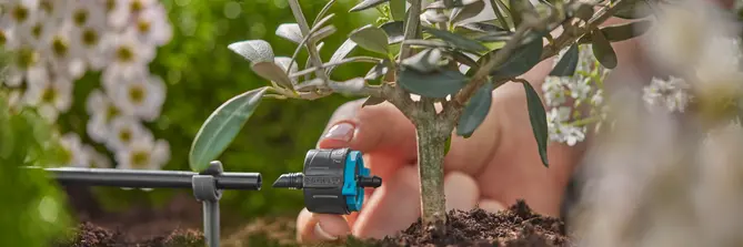 Close-up of the Gardena Micro-Drip in a flowerbed