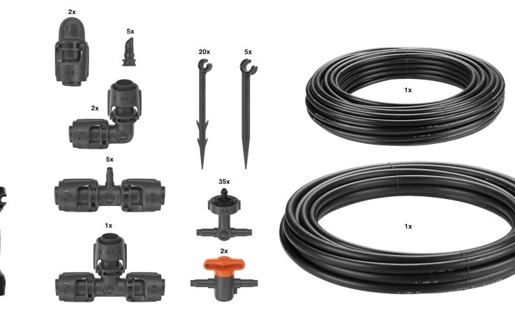 De Startset voor Verhoogde Bloembedden en Moestuinen van GARDENA is ideaal voor het betrouwbaar en waterbesparend bewateren van je verhoogde bloembed of moestuin. De set bevat alle onderdelen die je nodig hebt voor een waterbesparende bewatering tot wel 35 moestuinplanten, zoals tomaten of kruiden. Kwetsbare perkplanten en zaailingen hebben vooral veel aan druppelbewatering. Je kan de gebruiksklare set in slechts een paar eenvoudige stappen installeren. De onderdelen zijn gemakkelijk te koppelen en ontkoppelen. Dankzij de praktische herbruikbaarheid is het Micro-Drip-System duurzaam. De set voorziet de planten van de ideale hoeveelheid water, zelfs bij hoogteverschillen. Je kan de set uitbreiden met extra MDS-onderdelen. Gebruik bijvoorbeeld de Besproeiingscomputer Select (art. nr. 1891-20) voor een nog efficiëntere watertoevoer. Je kan een programma instellen en je bed wordt automatisch betrouwbaar bewaterd, zelfs als je er niet bent. Micro-Drip-System. Zo zorg je goed voor je planten maar bespaar je toch water. Makkelijk en nauwkeurig bewateren, om water en tijd te besparen.