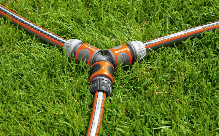 Wie kent dit probleem niet: uw tuin heeft maar één waterpunt, maar u zou graag twee installaties tegelijk op de tuinslang willen aansluiten. Door het GARDENA 3-wegstuk te gebruiken kunnen slangen eenvoudig worden afgetakt. Zo kunt u meerdere tuinwerkzaamheden tegelijk uitvoeren: u kunt het gazon sproeien terwijl u de tuinslang tegelijk gebruikt voor het besproeien van bloemperken. Het 3-wegstuk is geschikt om 19 mm (3/4")-slangen af te stemmen op 13 mm (1/2")-slangen. Voor elk probleem is er een oplossing.
