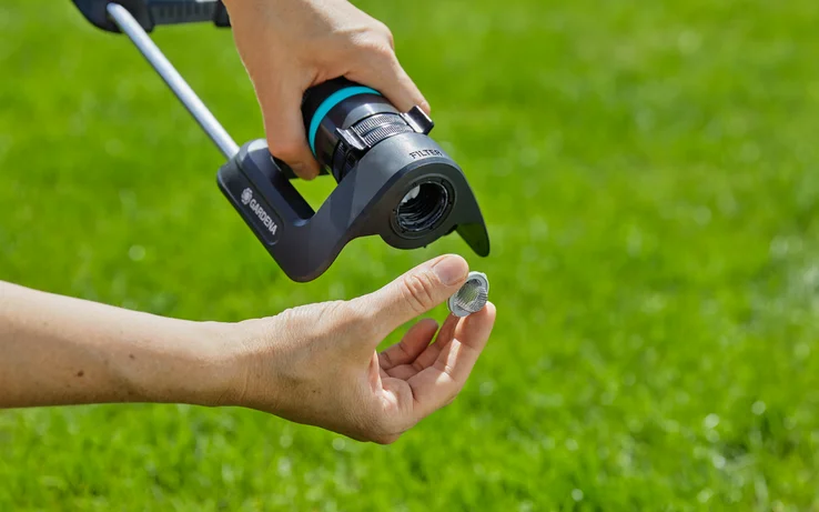 De EcoLine Zwenksproeier van GARDENA bewatert rechthoekige gazons of bloemperken van 90 tot 220 m² nauwkeurig en gelijkmatig, zonder dat er plassen ontstaan. Deze zwenksproeier, ontworpen met kunststof vervaardigd uit meer dan 65 procent gerecycled materiaal uit huishoudelijk afval, biedt de duurzame oplossing om jouw gazon op warme zomerdagen te bewateren. De aluminium buizen van de sproeier bevatten meer dan 25 procent gerecycled materiaal. De gebruikte metalen elementen versterken de stevigheid en duurzaamheid van de sproeier en geven hem een stijlvol uiterlijk. Plaats eenvoudigweg de zwenksproeier op jouw gazon, koppel een tuinslang aan de kraan en zet de kraan open. Vervolgens kun je het bereik van de sproeier gemakkelijk van 7 tot 17 meter aanpassen. De EcoLine vierkante sproeier heeft in breedte een bereik van maximaal 13 meter. Met de vierkante sproeier kun je zowel een smal bloemperk als je hele gazon sproeien. De zwenksproeier is uv- en vorstbestendig en je kunt hem dus het hele jaar door buiten laten. De sproeier heeft nog een handige en slimme functie waarmee de duurzaamheid wordt onderstreept: een ingebouwd, uitneembaar filter voorkomt dat de sproeier door vuildeeltjes verstopt raakt. Dit filter is gemakkelijk te verwijderen en eenvoudig onder de kraan schoon te maken. Als de sproeier verstopt raakt door kalk, kun je de gaatjes met de meegeleverde reinigingsnaald gemakkelijk schoonmaken. De EcoLine Zwenksproeier wordt in Duitsland vervaardigd en de kwaliteit wordt door GARDENA ondersteund met vijf jaar fabrieksgarantie. Een natuurlijke keuze voor tuiniers met passie. ReTh!nk - De nieuwe EcoLine serie. Verantwoord geproduceerd. Esthetisch ontworpen. Duurzaam vervaardigd.