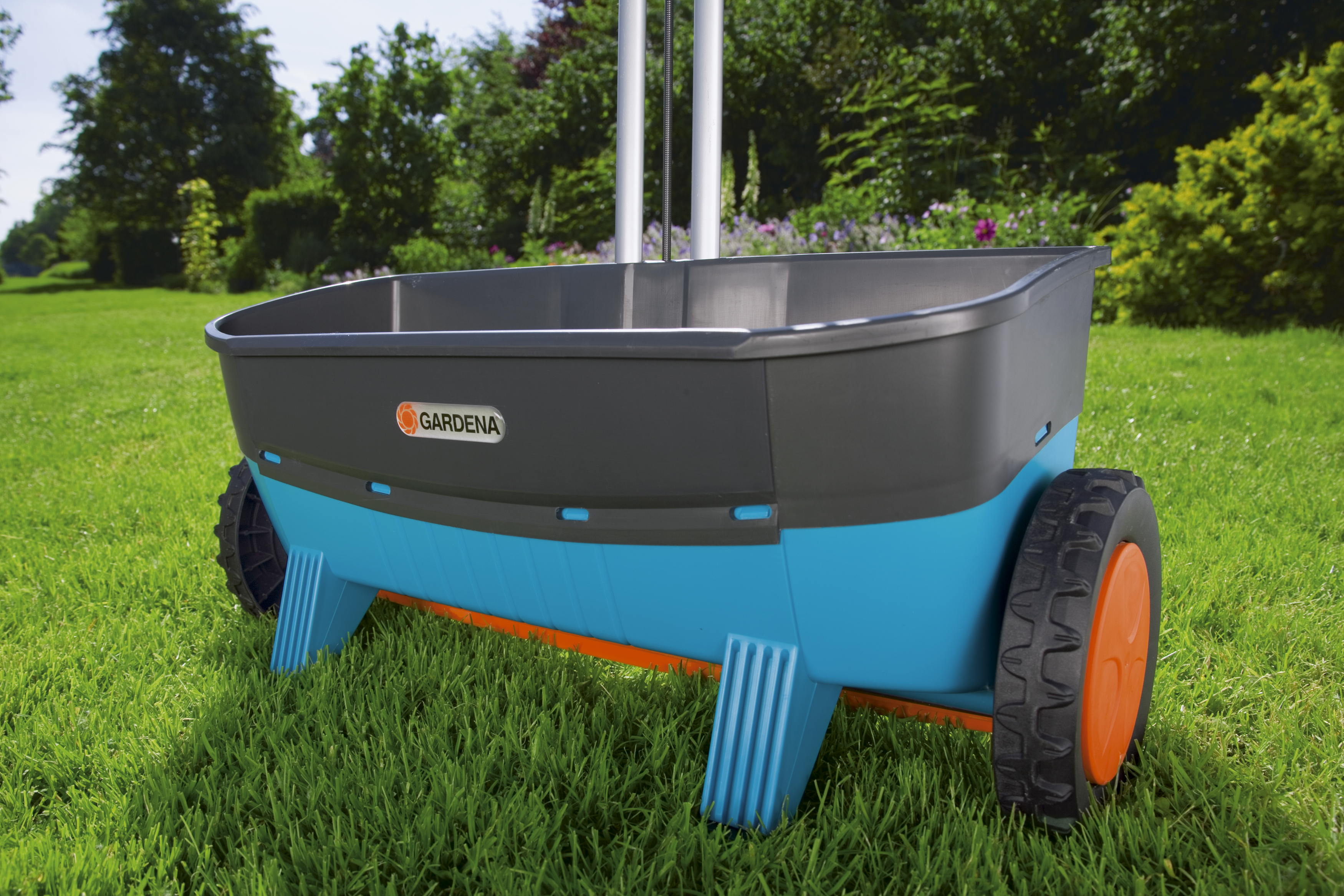 Сеялката GARDENA Comfort 800 има ширина на засяване 53 см, голям обем от 20 л и е подходяща за големи площи. Благодарение на иновативния, изключително еластичен разпределителен цилиндър, материалът се разпръсква оптимално. Практичният и пестящ време цветен маркер на следата предотвратява предозирането и многократното разпръскване. Маркирането се извършва чрез два контейнера по 0,5 л с регулируемо дозиране на капките и водоразтворим цветен прах. Екологично съобразеното оцветяване се разтваря със следващия дъжд. Благодарение за задвижването с две колела сеялката се движи равномерно. Функцията за свободен ход на колелата е практична и гарантира, че сеялката засява само когато се бута напред. Когато сеялката се дърпа, не се извършва работа. Сеялката може да се зарежда с посевен материал с различни размери: например с тор, семена, вар, пясък, филц или сол. Поради това тя може да се използва целогодишно. Количеството тор или семена може да бъде регулирано оптимално посредством таблицата за дозиране. Винаги лесно и винаги точната доза. Благодарение на здравата Т-образна алуминиева ръкохватка, косачката може да се ползва както с една, така и с две ръце. Лостът за дозиране с функция за включване и изключване е на самата ръкохватка и е удобен за манипулиране. Контейнерът е изработен от висококачествена пластмаса, колелата притежават нужното сцепление за всеки вид работа и всяка повърхност. Сеялката се почиства лесно под водна струя.