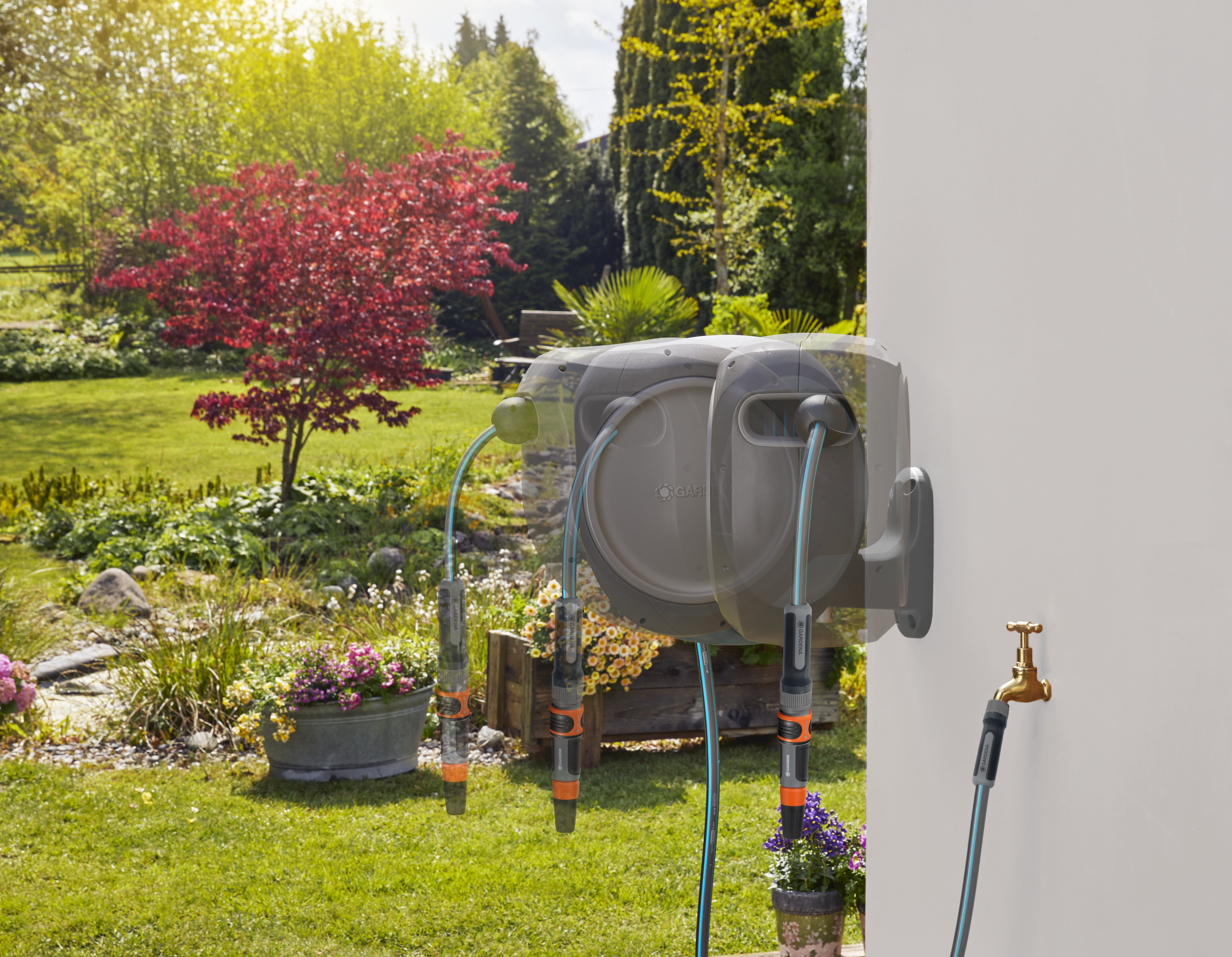 Effortless hose management: GARDENA Retractable Hose Reel RollUp for tidy storage