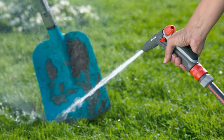 The GARDENA Classic Adjustable Gun Nozzle with Flow Control offers everything you need for watering: The small and compact Adjustable Gun Nozzle lies lightly in the hand and does not slip. It cleans with hard jet and waters with fine mist. Both water jet patterns are easy to set. If longer watering is required, the pulse trigger can be locked. Tiring of the hand is thereby prevented.