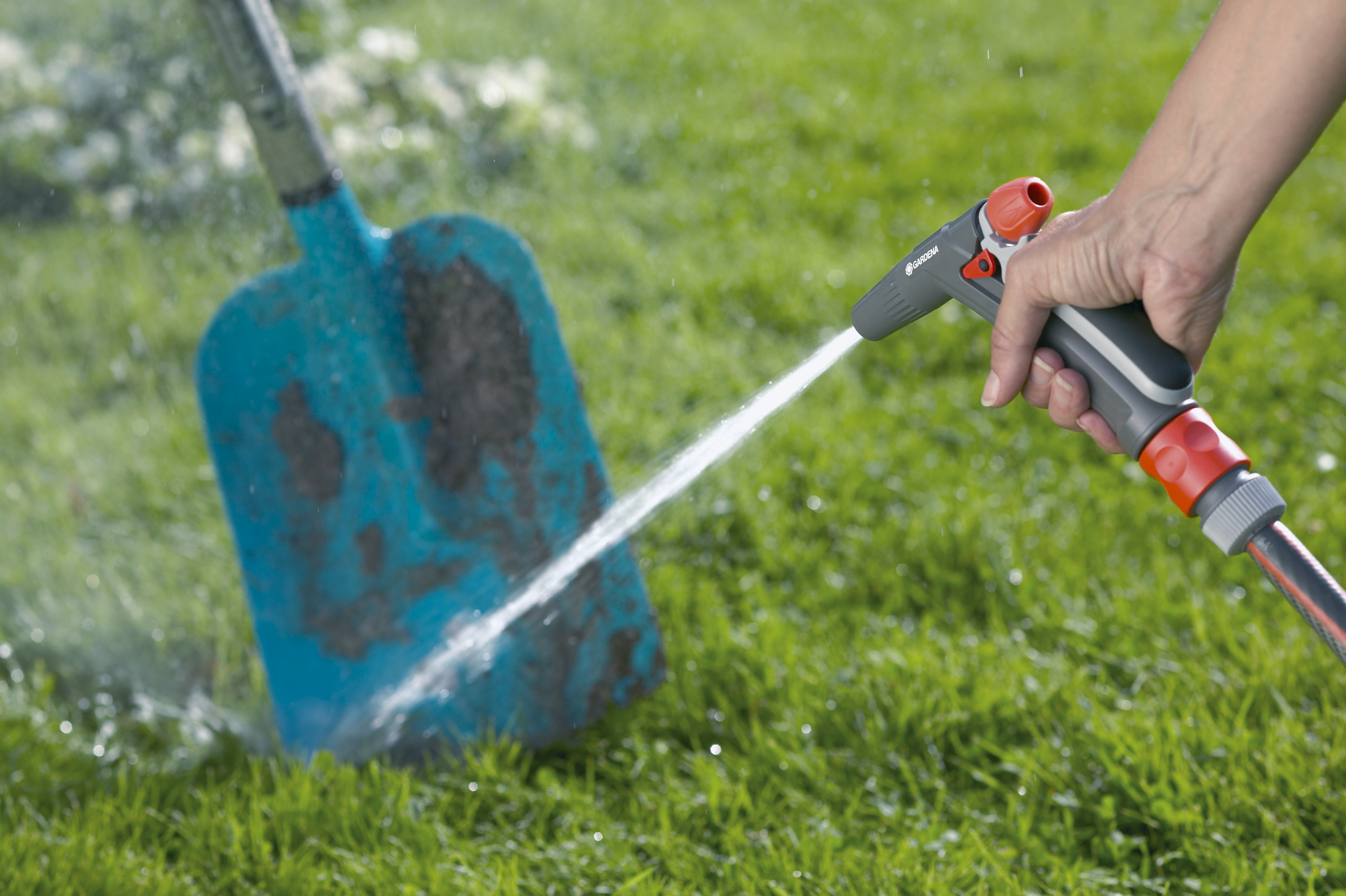 The GARDENA Classic Adjustable Gun Nozzle with Flow Control offers everything you need for watering: The small and compact Adjustable Gun Nozzle lies lightly in the hand and does not slip. It cleans with hard jet and waters with fine mist. Both water jet patterns are easy to set. If longer watering is required, the pulse trigger can be locked. Tiring of the hand is thereby prevented.