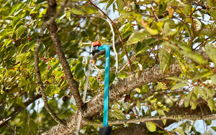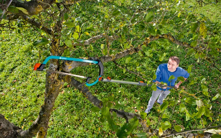 Die GARDENA combisystem-Bügelsäge kann wahlweise als normale Handsäge oder in Verbindung mit einem combisystem-Stiel eingesetzt werden. Dadurch können Arbeiten bis in ca. 5 Meter Höhe auf einfache Weise bewältigt werden. Ein angenehmes Arbeiten ermöglicht das um 360° drehbare Sägeblatt. Die verdrehsichere Sägeblattarretierung gewährleistet dabei eine sichere Handhabung der Bügelsäge. Das gehärtete Sägeblatt besitzt eine Feinschnittzahnung und hat eine Länge von 350 mm. Die Blattspannung ist problemlos nachstellbar, die Spannteile der Säge sind rostfrei. Ebenso besitzt sie eine rostgeschützte Stahlbügelkonstruktion. Die Garantiezeit beträgt 25 Jahre.