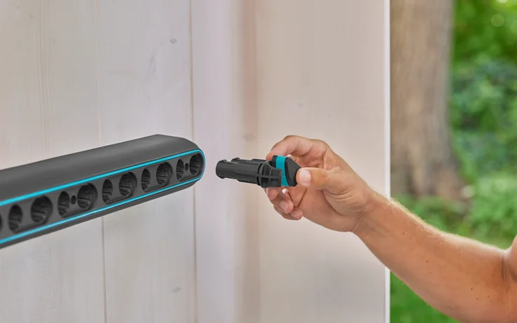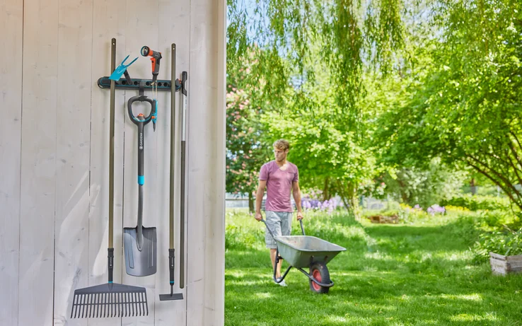 Die GARDENA Geräteleiste Flex ist ideal geeignet für die platzsparende Aufbewahrung Deiner combisystem Geräte und Stiele sowie anderer einteiliger Gartengeräte. Die Geräteleiste ist mit zwei Gerätehaltern ausgestattet. Diese verfügen über kleine Haken zum Aufhängen von Scheren und Kleingeräten. Die flexiblen, frei steckbaren Werkzeughalter kannst Du bequem in 30°-Schritten rotieren, um die Halterungen an Deine Bedürfnisse flexibel anzupassen. Sie sind kompatibel mit den GARDENA combisystem Vorsatzgeräten wie auch den Original GARDENA System Anschlussgeräten. Zusätzlich sind zwei Stielhalter sowie ein Universalhaken für andere marktübliche Gartengeräte wie Spaten enthalten. Bei Bedarf kannst Du die Leiste mit dem Einzelstecker Flex (Art.-Nr. 3507-20) und dem Stielhalter Flex (Art.-Nr. 3508-20) erweitern, um mehr Geräte zu lagern. Die Geräteleiste bietet Dir eine Aufbewahrungsmöglichkeit für zwei Stiele aus dem GARDENA combisystem. GARDENA unterstützt die Geräteleiste Flex mit 25 Jahren Herstellergarantie nach Registrierung unter gardena.com/registration innerhalb von 3 Monaten nach Kauf. Lass Deine Werkzeug-Familie wachsen. GARDENA combisystem. Auswechselbar. Langlebig. Für alle Gartenarbeiten.