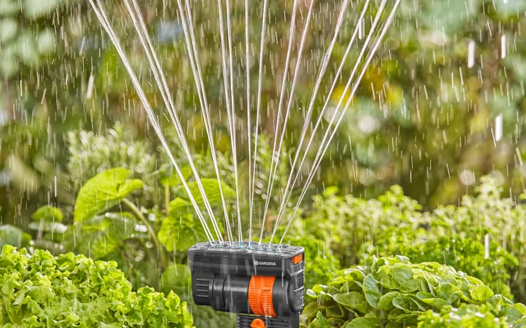 Mit dem Viereckregner OS 90 von GARDENA kannst Du Beetpflanzen wie Gemüse, Blumen und Setzlinge zuverlässig bewässern. Die Komponente des Micro-Drip-Systems ist optimal für die flächendeckende Bewässerung von rechteckigen Flächen geeignet. Insgesamt kannst Du zwischen 1 und 90 m² beregnen. Durch die patentierte Quick & Easy Verbindungstechnik mit integrierten Symbolen und Feedback-Klicken als gut hörbarem Signal in der geschlossenen Position ist die Installation des Regners sehr einfach. Ebenso leicht kannst Du ihn wieder vom 13-mm-Verlegerohr entfernen, falls Du den Viereckregner an anderer Stelle einsetzen möchtest. Mit Hilfe der flexiblen Regulierung bestimmst Du die Sprengbreite bis maximal 7 m und die Wurfweite bis 13 m. Sogar die Regulierung des Wasserdurchflusses ist möglich. Um Dich dem Wachstum Deiner Pflanzen anzupassen, nutzt Du ein Verlängerungsrohr (Art.-Nr. 13326-20) und bewässerst dadurch auch weiterhin von oben herab. Die 16 Düsenausgänge des Viereckregners bestehen aus weichem Kunststoff und sind per Fingerwisch bequem von Kalkablagerungen zu reinigen. Zudem sorgt der integrierte Schmutzfilter dafür, dass keine Verunreinigungen in Deinen Viereckregner OS 90 gelangen. Micro-Drip-System. Pflegt Deine Pflanzen mit jedem kostbaren Tropfen. Einfache, präzise Bewässerung – spart Wasser und Zeit.