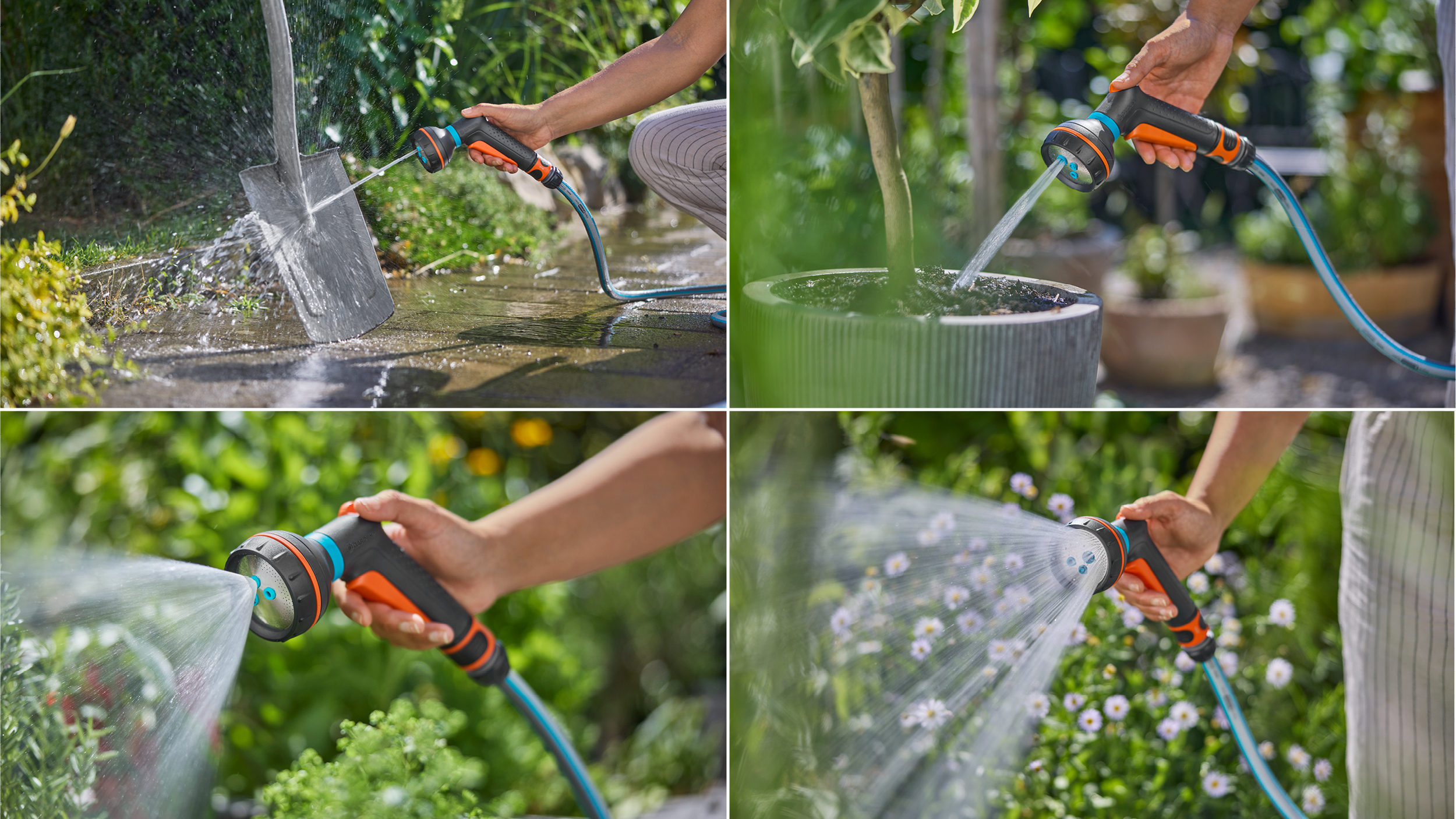 Die Classic Multifunktionsbrause von GARDENA hat vier vielseitige Sprühbilder, ist widerstandsfähig gegenüber UV-Strahlung und gelegentlichem Frost während der Gartensaison und "Made in Germany".