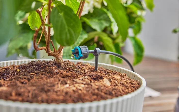 Den regulierbaren Endtropfer von GARDENA setzt Du im Rahmen des Micro-Drip-Systems gezielt ein, um einzelne Topfpflanzen am Ende des 4,6-mm-Verteilerrohres punktuell zu bewässern. In Verbindung mit dem 13-mm-Verlegerohr ist das punktuelle Bewässern von Pflanzreihen ebenso möglich. Der druckkompensierende Endtropfer ist für den unterschiedlichen Wasserbedarf von Pflanzen vorgesehen. Per Skalierung legst Du die Wasserabgabe zwischen 1 und 8 Liter pro Stunde fest. Daher kannst Du den Endtropfer vielseitig verwenden wie zum Beispiel für Balkone, Terrassen und sogar bei Höhenunterschieden wie Hanglagen. Pflanzen wie Tomaten, Kräuter oder empfindliche Setzlinge erhalten so die optimale Dosierung. Da der Endtropfer druckkompensierend ist, wird für eine konstante Wasserausbringungsmenge gesorgt. Der regulierbare Endtropfer ist überaus pflegeleicht und überzeugt mit einer selbstreinigenden Labyrinthtechnik, die ein Verstopfen verhindert. Durch die clevere Easy & Flexible Verbindungstechnik ist die Installation komfortabel und einfach. Drehe die MDS-Komponente ein, erweitere sie flexibel und löse die Komponenten ebenso leicht wieder voneinander. Micro-Drip-System. Pflegt Deine Pflanzen mit jedem kostbaren Tropfen. Einfache, präzise Bewässerung – spart Wasser und Zeit.