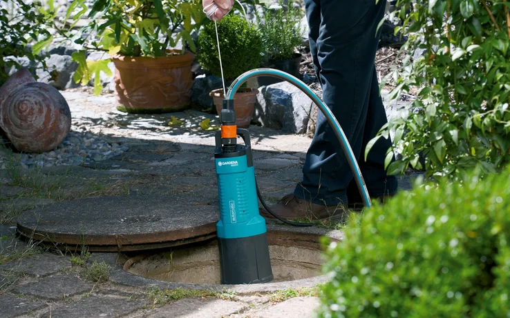 Für tiefe Brunnen oder Zisternen ist die Tauch-Druckpumpe 6000/5 automatic genau das richtige Produkt. Extrem leistungsstark und geräuschlos befördert diese – auch dauerhaft eingetaucht - das Wasser aus bis zu 13 Metern Tiefe um damit Ihren Garten zu bewässern oder Ihr Haus mit Brauchwasser zu versorgen. Für einen komfortablen und stromsparenden Betrieb ist die Pumpe mit einer innovativen automatic-Funktion ausgestattet. Ein integrierter Druckschalter mit Durchflusserkennungssensor schaltet die Pumpe bei Wasserentnahme automatisch ein und danach auch wieder aus. Robuste und hochwertige Materialien ermöglichen den problemlosen Betrieb unter Wasser und schützen die Pumpe vor Beschädigungen. So vermeidet ein Filter aus rostfreiem Edelstahl das Eindringen von Schmutzpartikel in die Pumpe. Ein Thermoschutzschalter schützt den leisen, wartungsfreien Kondensatormotor vor Überlastung. Ein integrierter Rückflussstopp verhindert ein Leerlaufen des Schlauches nach Ausserbetriebnahme und verkürzt die Zeit bis zum Druckaufbau bei erneuter Inbetriebnahme. Auch ein Trockenlaufen ist nicht möglich. Ein Sensor meldet das Fehlen des Wassers und stoppt die Pumpe automatisch. Viele Eigenschaften, die Ihnen einen sicheren und langen Pumpenbetrieb ohne Probleme ermöglichen. Eine hohe Betriebssicherheit und eine lange Lebensdauer der Pumpe garantieren ebenso doppelte Motorabdichtungen und eine keramikgeschützte Antriebswelle. Zuverlässig wird das Wasser durch ein 4-stufiges Pumpenlaufwerk effizient und leise an Ort und Stelle befördert. Praktisch: Dank eines 15 Meter langen Anschlusskabels ist die Pumpe schnell installiert und mit einem mitgelieferten Befestigungsseil gelangt die Pumpe einfach ins Nass oder bei Bedarf wieder nach oben.