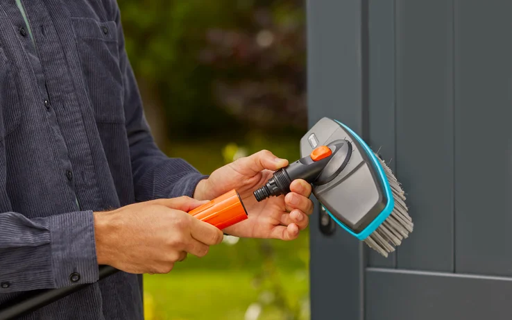 Il vous suffit de fixer la brosse à un manche Cleansystem, puis de la connecter au tuyau d'arrosage pour réaliser un nettoyage en profondeur des surfaces. Son utilisation pour diverses tâches de nettoyage sur de grandes surfaces autour de la maison est très facile, et le résultat obtenu est impressionnant.