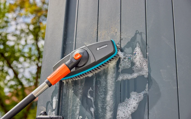 En combinaison avec les manches à passage d'eau (réf. 18800, 18802, 18804), elle propose une application particulièrement efficace sur les surfaces sensibles. En utilisant les shampooings de GARDENA (réf. 1680-20), l'efficacité de la brosse à manche est augmentée. Ils s'insèrent en toute simplicité dans le distributeur du manche et se dosent selon les besoins, promettant ainsi un nettoyage intensif des surfaces.
