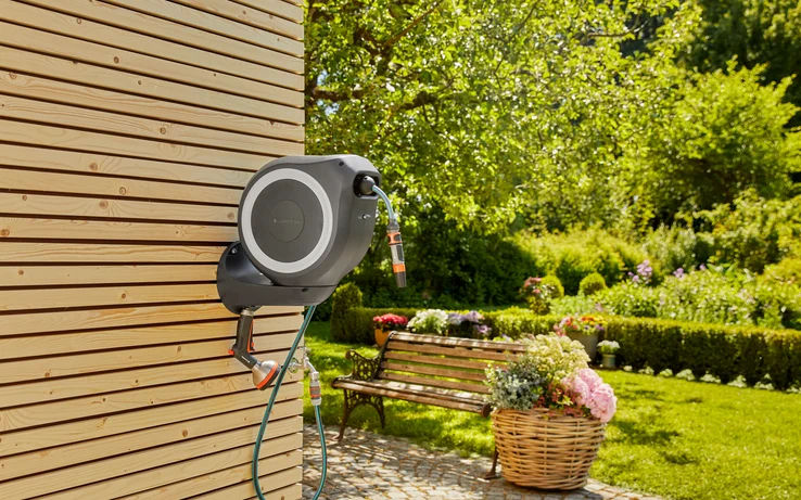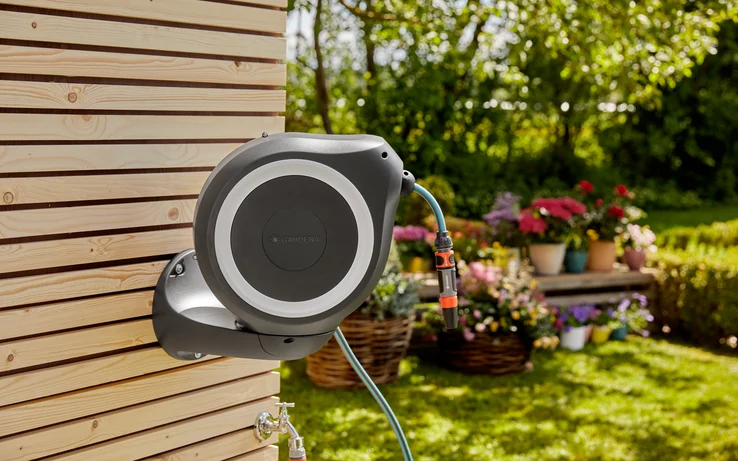 Le dévidoir automatique mural RollUp S 15 m GARDENA est idéal pour arroser les petits jardins ou les terrasses. C’est une solution d’arrosage et de nettoyage très pratique pour avoir son tuyau d’arrosage toujours prêt à l’emploi et bien rangé. Une fois fixé au mur, le dévidoir automatique et mural GARDENA peut pivoter à plus de 180° afin de pouvoir arroser les moindres recoins du jardin ou de la terrasse. Il suffit de tirer sur le tuyau d’arrosage pour le dérouler puis de le relâcher pour l’enrouler. Le dévidoir automatique mural GARDENA est équipé d’un frein centrifuge, d’un ressort en acier de haute qualité pour un enroulement toujours fiable et homogène du tuyau et d’un guide-tuyau intégré pour éviter les torsions lors de l'enroulement du tuyau (technologie RollControl). Le dévidoir GARDENA est équipé d’un nez de robinet accessible directement sur le flanc pour permettre une connexion/ déconnexion ou une extension faciles du tuyau de raccordement. Un verrouillage du tuyau s’effectue à intervalles courts et réguliers (50 cm) pour permettre une manipulation sans effort du dévidoir automatique mural RollUp S 15 m GARDENA. Une fois fixé au mur, le dévidoir peut être utilisé toute l’année car il dispose d’une protection anti-gel et anti-UV. garantie commerciale 5 ans – Couleur : blanc
