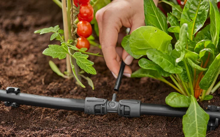 The T-Joint 1/2" – 3/16" by GARDENA offers you a convenient transition from the 13 mm Connecting Pipe to the 4.6 mm Supply Pipe in the Micro-Drip-System. The five included T-Joints have two inlets and outlets each for the Connecting Pipe, and one inlet and outlet for the Supply Pipe. The connector is very useful when you want to branch off from the Connecting Pipe to the individual plants in the bed or in plant pots or troughs. Thanks to the patented connection technology, you can expand your Micro-Drip-System in the garden quickly, easily and flexibly. The clever symbolism ensures intuitive installation. The feedback click as a clearly audible signal in the closed position gives you a reliable feeling during installation. You can easily connect, flexibly extend and disconnect the components thanks to the patented Quick & Easy connection technology. The reusability of the MDS-components makes the entire system sustainable. When combined with the separately available Master Unit 1000 (Art. No. 13333-20) or Master Unit 2000 (Art. No. 13310-20), the Micro-Drip-System is reliably water-proof with even water pressure. With the T-Joint 1/2" – 3/16" you get a GARDENA quality product made in Europe. Micro-Drip-System. Caring for your plants and every precious drop. Easy, accurate, water and time-saving irrigation.