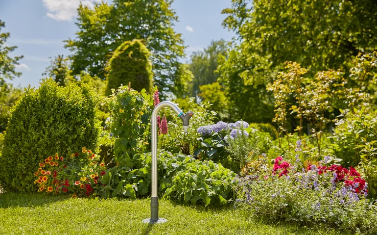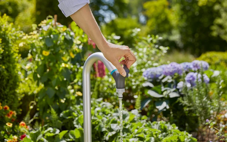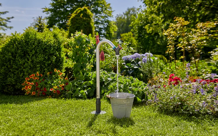 Η βρύση νερού κήπου GARDENA προσθέτει μια πρακτική βρύση νερού στο σύστημα άρδευσης σας. Εγκαθιστάτε την εξωτερική βρύση νερού χωρίς πρόσθετα εργαλεία σε έναν πάροχο νερού, με λίγα μόνο απλά βήματα, ώστε να είναι άμεσα έτοιμη για χρήση. Η λειτουργία είναι εύκολη και σας προσφέρει πρακτικές λειτουργίες. Αυτό ξεκινά με το άνετο ύψος της βρύσης, καθιστώντας το εύκολο στη χρήση. Μπορείτε να περιστρέψετε τη βρύση του νερού με ευελιξία προς όλες τις κατευθύνσεις και να προσδιορίσετε τον ρυθμό ροής του νερού μέσω μιας ρυθμιστικής βαλβίδας. Η απενεργοποίηση του νερού είναι επίσης εφικτή χρησιμοποιώντας τη βαλβίδα. Λόγω της λειτουργίας Anti-Splash, οι κάδοι και τα ποτιστήρια γεμίζουν χωρίς πιτσίλισμα, ακόμα κι αν δεν έχετε συνδέσει σωλήνα. Υλικά υψηλής ποιότητας και αντοχής χρησιμοποιούνται στη βρύση νερού κήπου. Ο σωλήνας είναι κατασκευασμένος από αλουμίνιο, γεγονός που κάνει τη βρύση πολύ στιβαρή. Η υψηλή ποιότητα του προϊόντος έχει κατασκευαστεί στη Γερμανία. Νερό όπου χρειάζεται. Η εύκολη πρόσβαση στο νερό: αγωγοί κάτω από το έδαφος.
