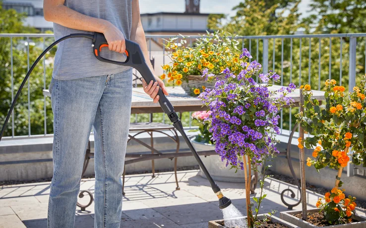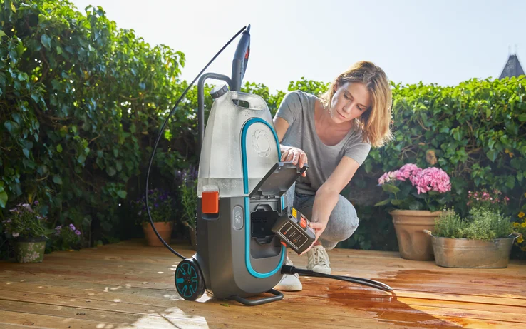 Το Σετ Πλυστικό Μπαταρίας AquaClean Li-40/60 της GARDENA είναι η φορητή και αθόρυβη λύση καθαρισμού. Είναι ανεξάρτητο από συνδέσεις νερού και ισχύος, δηλαδή βρύση και πρίζα, και μπορεί να χρησιμοποιηθεί με μεγάλη ευελιξία. Διαθέτει αφαιρούμενο δοχείο νερού με όγκο 14 λίτρων. Για εργασίες που διαρκούν περισσότερο, υπάρχει δυνατότητα σύνδεσης λάστιχου στη βρύση, χάρη στην ενσωματωμένη σύνδεση εύκαμπτου σωλήνα GARDENA. Η πίεση μπορεί να ρυθμιστεί ανάλογα με την εφαρμογή και για πιο ήπιο καθαρισμό διαφορετικών επιφανειών. Η λειτουργία Soft-Clean-Mode εγγυάται τον μέγιστο χρόνο λειτουργίας. Στο σετ περιλαμβάνεται ένα ακροφύσιο για την αφαίρεση σκληρής βρωμιάς και ένα ψεκαστικό ποτίσματος για φορητό πότισμα σε απομονωμένες περιοχές του κήπου. Η εύκολης φροντίδας μπαταρία GARDENA των 40 V και 2.6 Ah μπορεί να επαναφορτίζεται ανά πάσα στιγμή και χωρίς φαινόμενο μνήμης, ενώ μπορεί να χρησιμοποιηθεί και με τα άλλα προϊόντα του Συστήματος Μπαταρίας HeartBeat 40 V της GARDENA.