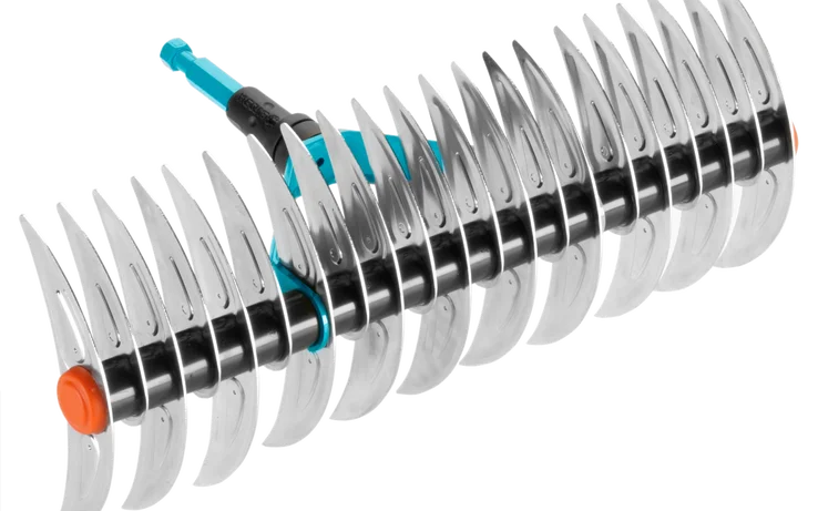 Řezací hrábě GARDENA combisystem jsou díky rozdílným řadám hrotů univerzální pro různé zahradní práce. GARDENA combisystem umožňuje flexibilní používání díky vyměnitelným koncovým nástrojům. Hrábě jsou kompatibilní se všemi násadami systému GARDENA combisystem a lze je nasadit a zajistit pomocí šroubu. GARDENA doporučuje násadu o délce 180 cm, výběr násady závisí na pracovních podmínkách a tělesné výšce uživatele. Pevné spojení mezi hráběmi a násadou zajišťuje vždy pohodlnou práci. Špičaté hroty na jedné straně a pracovní šířka 35 cm umožňují odstraňování mechu a plsti proniknutím několik milimetrů do země. Po otočení hrábí můžete použít zaoblené a blízko sebe umístěné hroty k hrabání listí, suti a dokonce i kamenů. Hrábě jsou odolné vůči korozi díky své vysoce kvalitní oceli s povrchem duroplast a pozinkovaným hrotům. Combisystem věšák na nářadí Flex (č. v. 3505-20) umožňuje prostorově úsporné skladování pro combisystem řezací hrábě. GARDENA podporuje tento kvalitní výrobek zárukou v trvání 25 let. Rozšiřte svou rodinu nástrojů. GARDENA combisystem. Možnost výměny koncových nástrojů. Odolnost. Pro jakýkoliv zahradní úkol.