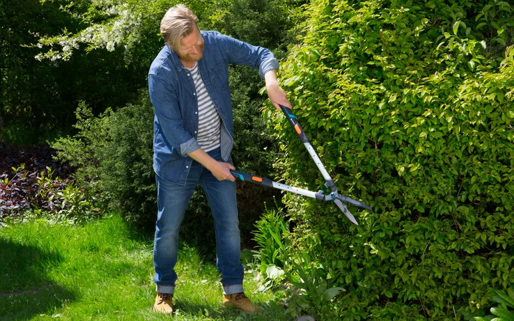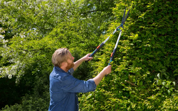 Mit der cleveren Teleskopfunktion wird die Heckenschere TeleCut von GARDENA beim Schneiden von Hecken und Sträuchern zu Deinem verlängerten Arm. Dank der ausfahrbaren Teleskoparme bist Du mit der TeleCut in der Lage, Deine Reichweite von 70 auf bis zu 90 Zentimeter zu verlängern. Dadurch wird Dir ein unnötiges Strecken oder der Gang auf eine Leiter erspart und Du schneidest bequem vom Boden aus auch höhere Hecken. Ebenso vergrößert sich die Hebelkraft bei diesem Vorgang. Durch die Verwendung von Aluminiumrohren besitzt die Heckenschere ein geringes Gewicht, was sich kraftsparend auswirkt. Zum Komfort tragen ebenfalls die ergonomischen und glasfaserverstärkten Kunststoffgriffe bei, die robust und langlebig sind sowie einen guten Halt bieten. Beim Schneiden macht sich der praktische Anschlagspuffer bemerkbar, der Deine Handgelenke vor zu harten Stößen schützt. Auch die Klingen weisen gleich mehrere gelungene Merkmale auf. Sie sind aus robustem Stahl, was sie sehr langlebig macht. Die Klingen haben einen integrierten Astabschneider, der wirksam einzelne, dicke Äste schneidet. Effizient ist außerdem der Wellenschliff, mit dessen Hilfe Du beim Schneiden bei größeren Flächen sehr gute Ergebnisse erzielst. Dieser Schliff sorgt dafür, dass beim Schneiden Blätter und Zweige nicht wegrutschen, sondern im Schnittbereich gehalten werden. Abgerundet wird das Schneiderlebnis mit der Antihaftbeschichtung, die Reibung reduziert und für geschmeidiges Arbeiten sorgt. Als zusätzlichen Beweis dafür, dass die TeleCut ein echtes Qualitätsprodukt ist, gibt Dir GARDENA eine Herstellergarantie von 25 Jahren auf das Produkt. Deiner Vision mit jedem Schnitt näher. Leicht handhabbar, effektiv und langlebig: Schneidgeräte für kreative Gärtner.