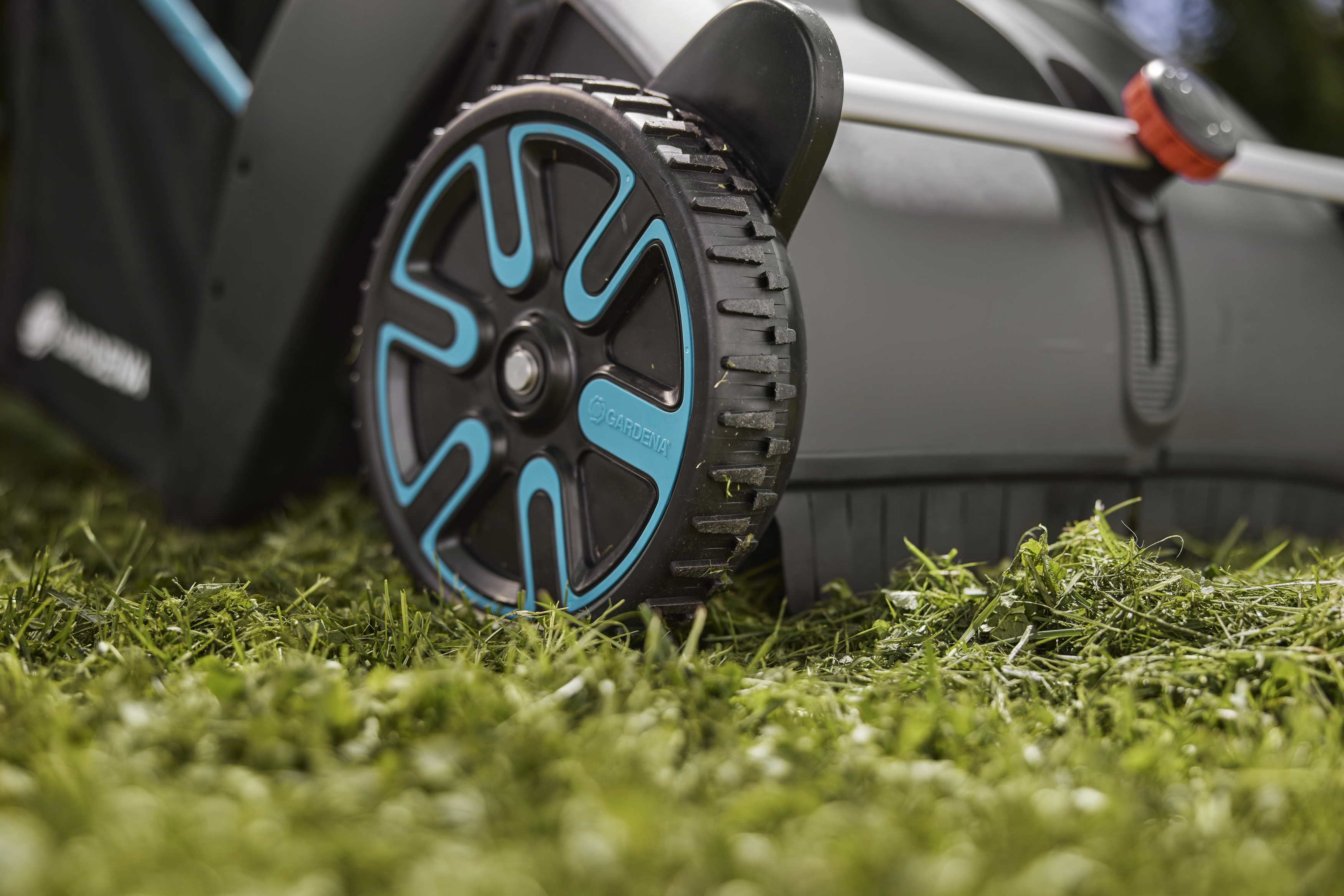 Der Laubsammler für Rasenflächen und Terrassen ist so konzipiert, dass er leicht und einfach zu manövrieren ist. Große Räder ermöglichen es, den Sammler problemlos über unebenen Untergrund zu schieben, während das Reifenprofil für gute Haftung und starken Grip sorgt – selbst bei nassen Bedingungen