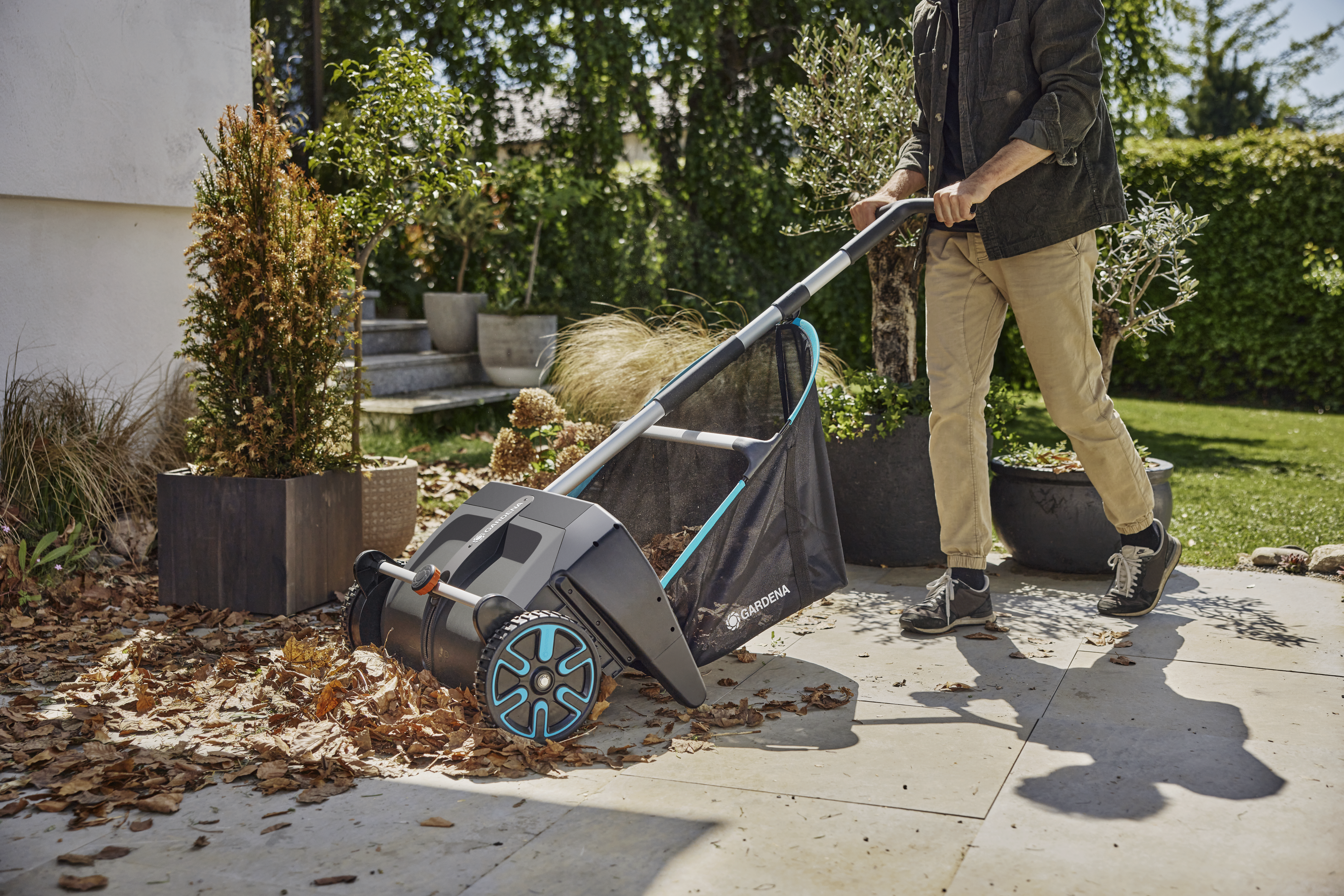 - Für Rasen und Terrassen: Der Laub- und Rasensammler entfernt Laub, Grasschnitt und Gartenabfälle von Rasenflächen und Terrassen.