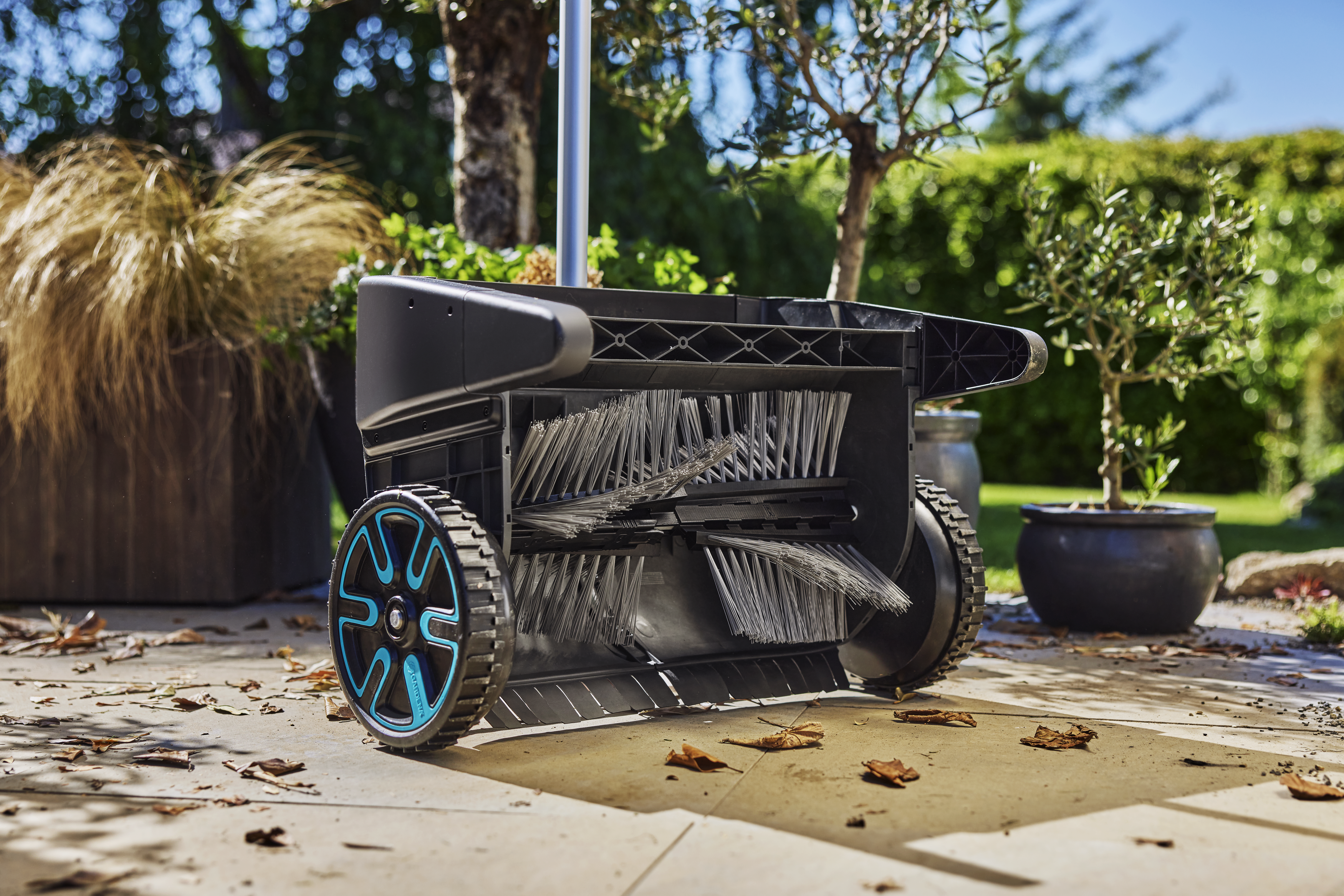 Grasschnitt und abgefallenes Laub können Gärten ein wenig unordentlich aussehen lassen. Sie können auch das Wachstum von Pflanzen beeinträchtigen und dazu führen, dass Terrassen und Wege rutschig werden. Das Nachrüstset Laub- und Rasensammler für Terrasse wurde entwickelt, um Gartenabfälle schnell und einfach zu beseitigen. Einmal am GARDENA Laub- und Rasensammler (Art. 3565 und 3566) befestigt, verbessert das Zubehör das Sammeln von Laub und Grasschnitt von Terrassen- und Gehwegflächen und erleichtert so die Sauberkeit und Ordnung im Garten.