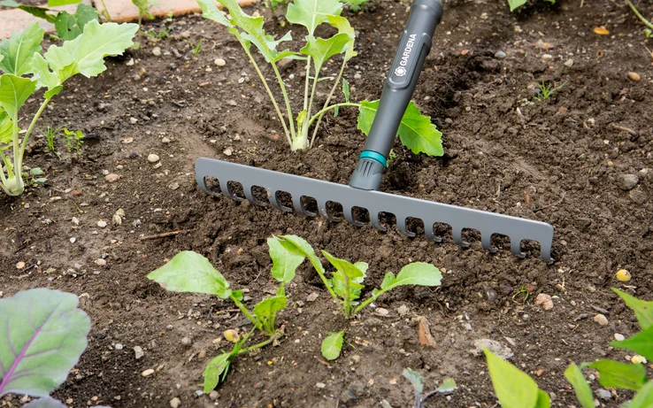 GARDENA NatureLine-riven kan bruges på forskellige måder til rivning, nivellering af bede og kultivering af jord Riven har en arbejdsbredde på 36 cm (14 tænder), mens de robuste tænder, der er fremstillet i kvalitetsstål, kan modstå alle former for belastninger og sikrer effektivt arbejde. Det lakerede bøgetræshåndtag (FSC®-certificeret) er solidt forbundet til riven – det rokker ikke og sidder ikke skævt. Garantiperioden er på hele 10 år.