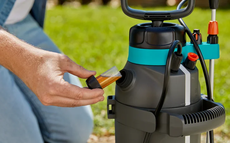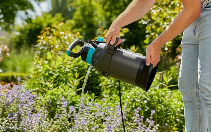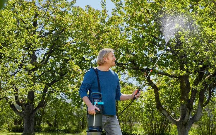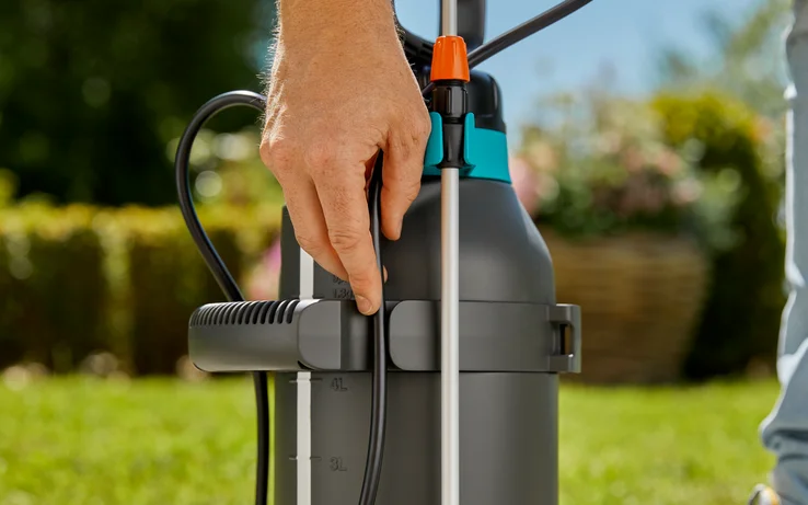 Hvis du vil sprøjte buske, vinstokke, træer eller andre planter med nøjagtighed, er Tyrksprøjte 5 l Plus fra GARDENA et meget godt valg. Den er udstyret med mange nyttige funktioner, der giver dig en hjælpende hånd til at tåge dine planter. Du finder en anden åbning med integreret målehætte på beholderen. Du kan bruge denne åbning til bekvemt at fylde beholderen, måle insekticid og tømme den efter brug. Før brug opbygges et tryk i 5 liters beholderen ved at pumpe det praktiske, brede D-håndtag op og ned. Fødderne sikrer et sikkert stand under arbejdet. Takket være visningsstrimlen har du altid fyldningsniveauet i visningen. Sprøjten er udstyret med et andet håndtag, der hjælper med at løfte og bære. Takket være den polstrede bærestrop ligger sprøjten behageligt på din skulder. Den teleskopiske sprøjtelanse med vinklet dyse sikrer lang rækkevidde og fleksibel anvendelse. For at være forberedt på forskellige krav til sprøjtevanding skal du bruge de forskellige indstillinger for den vinklede sprøjtedyse. Her har du valget mellem en stråle eller en dugdyse. Derudover fås en flad spraydyse til præcist arbejde på smalle steder. Det andet håndtag har også en praktisk slangevinder, så du kan vikle slangen rundt om håndtaget efter brug. Et nylonfilter er også inkluderet med tryksprøjten som tilbehør. Indsæt det, hvilket gør det muligt at filtrere hjemmelavede blandinger til pleje af planter. Interessante opskriftideer til dette er også inkluderet. Denne naturlige plantebeskyttelse giver dine planter yderligere næringsstoffer og beskytter dem samtidig mod skadedyr.