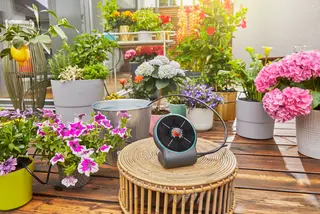 Med GARDENAs AquaBloom er dine blomster på altanen og i dine krukker i gode hænder - hele sæsonen. AquaBloom vander og plejer dine planter på de tidspunkter, hvor du ikke er i nærheden. Det hjælpsomme system kræver hverken vandhane eller strøm i din have eller på din terasse. Sættet er et komplet vandingssystem, der indeholder en 3-i-1 hovedenhed - En pumpe til sugning af vand, et ur der bestemmer vandingsskemaerne og en solcelle der lader de medfølgende genopladelige batterier. De 14 forudindstillede vandingsprogrmmer tillader at styre vanding af op til 20 planter ved hjælp af trykkompenserende drypvandere. Hver drypvander kan levere op til 300 ml. Husk at udnytte hvor praktisk og fleksibelt din AquaBloom kan placeres. Vælg et solrigt sted til hovedenheden: hæng den på en krukke, stil den på et bord eller hæng den på en væg. Installationen af AquaBloom er simpel og kan klares uden værktøj. Slip for tidskrævende vandingsopgaver og nyd din altan og terasse med velplejede planter og blomster hele sæsonen - lige meget hvor lang tid du er på ferie.