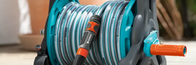 Vælg mellem slangevogne, -tromler, vægmonterede slangebokse og bærbare enheder til camping eller sejlsport