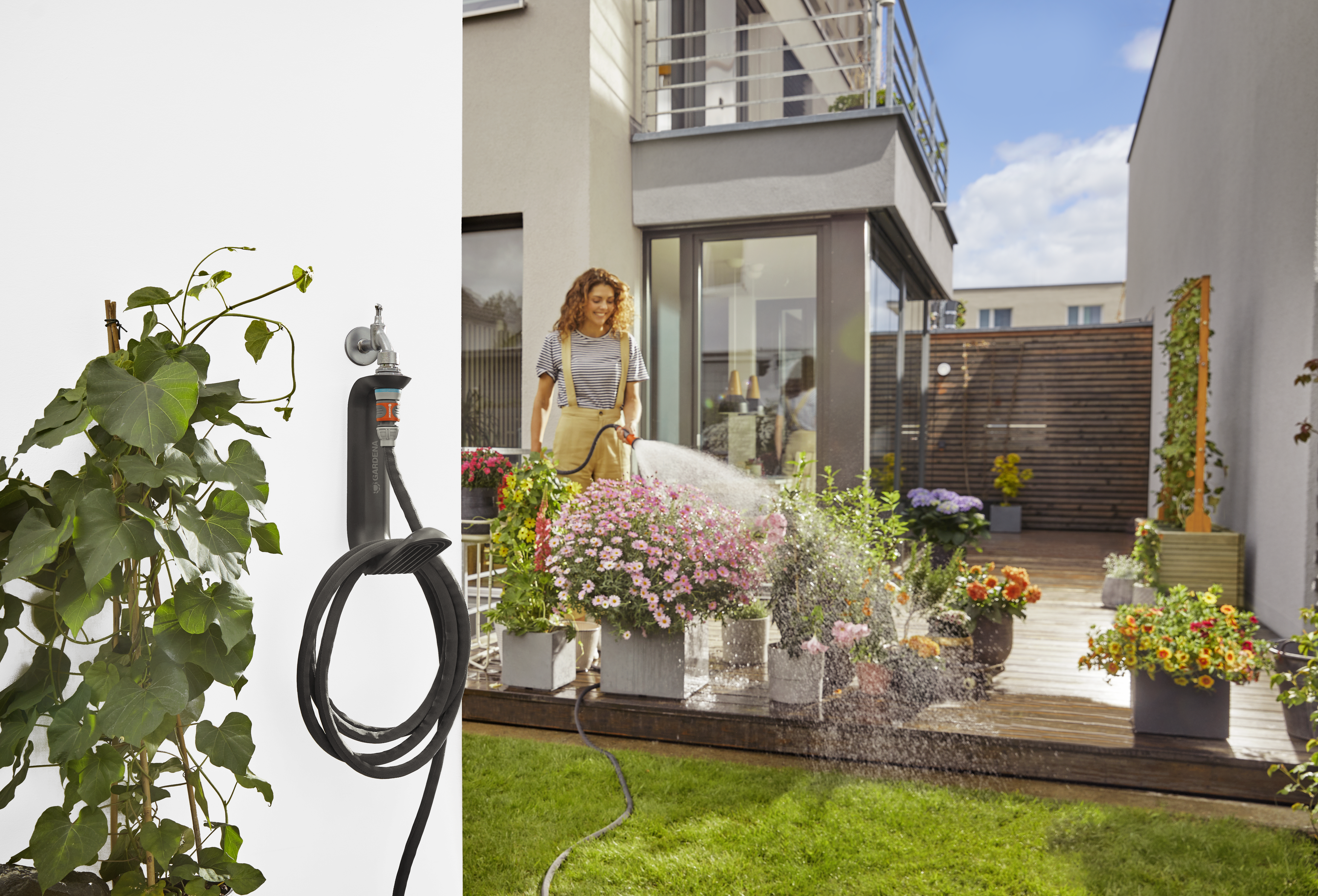 GARDENA praktiline Liano™ TapFix + 15 m Liano™ komplekt sisaldab nii voolikuhoidikut TapFix kui ka 15 m pikkust Liano™ tekstiilvoolikut koos kastmispihustiga. TapFixi saab kiiresti ja lihtsalt ühendada peaaegu igale kraanile (G 1, G 3/4 ja G 1/2 tolli), ilma et oleks vaja puurida või tööriistu kasutada. Tänu nutikale disainile jääb sein vooliku kasutamise ja hoiustamise ajal terveks ega saa kriimustada või kahjustada. Veekraani ja põranda vahele peab jääma vähemalt 50 cm vahe. Hoidik sobib ideaalselt komplektis sisalduvale Liano™ tekstiilvoolikule kuid seda saab kasutada ka kuni 20 m pikkuste Liano™ tekstiilvoolikutega. Kaasasolev 15 m pikkune tekstiilvoolik koosneb sisevoolikust, mis on kaetud tugeva tekstiiliga. See hõlbustab pottide, aiamööbli ja nurkade ümber manööverdamist, ilma et voolikul tekiks murdekohti või keerde. Kaasasolevat kastmispihustit saab kasutada näiteks potitaimede ja lillepeenarde kastmiseks. Uuenduslik UV- ja külmakindlus parandab vastupidavust ning võimaldab voolikut hoida õues aasta ringi. Kui soovid Liano™ voolikuhoidiku TapFix koos Liano™ tekstiilvoolikuga talveks keldri- või garaažiseinale hoiule panna, on TapFixi tagaküljel riputusava. GARDENA annab Liano™ TapFixile 5-aastase tootjagarantii ning Liano™ tekstiilvoolikule 30-aastase tootjagarantii.