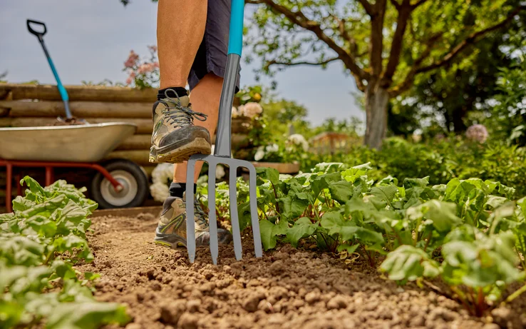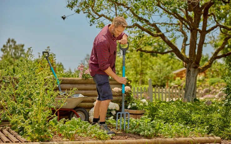 The GARDENA ClassicLine Fork is a convenient tool for digging without damaging roots, and for lifting out, loosening and transferring soil, in particular in planted areas. The extra-wide and ergonomically shaped D handle can be held with both hands comfortably at any point to ease your work. The oval shaft profile prevents the inadvertent turning of the handle. The extended plastic coating ensures comfortable, non-slip handling without transitions. The sturdy long tines consist of hardened quality steel. The total warranty period is 25 years.