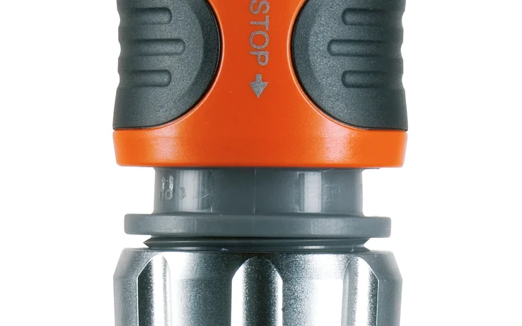 El conector Stop Premium GARDENA de alta calidad permite conectar y cambiar accesorios en la salida de la manguera de forma rápida y cómoda. El conector Stop está protegido por un anillo de caucho que evita posibles daños.