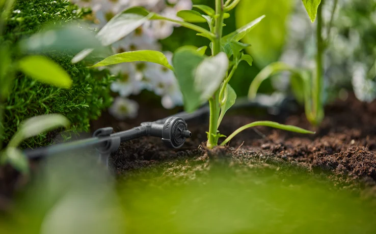 Sus plantas tendrán un suministro fiable de agua con la ayuda del gotero en línea con compensación de presión de 2 l/h de GARDENA. En combinación con la tubería de suministro de 4,6 mm, es ideal para regar plantas en macetas en hileras e hileras de plantas más cortas con requisitos de agua similares. El gotero compensa la presión. Esto significa que las plantas reciben la misma cantidad de agua incluso con diferencias de altura en balcones o desniveles. La tasa de aplicación de agua es una constante de 2 litros por hora. La función de autolimpieza es una tecnología de laberinto de autolimpieza integrada en el gotero. Por lo tanto, no es necesario limpiar el componente Micro-Drip-System. La instalación intuitiva es cómoda gracias a la tecnología de conexión Easy & Flexible. Simplemente conecte el gotero en línea con la tubería de suministro. La separación es igual de fácil, lo que le brinda un alto grado de flexibilidad en el uso. Sistema Micro-Drip. Cuidando tus plantas y cada preciada gota. Riego fácil, preciso, que ahorra agua y tiempo.