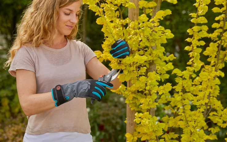 El guante para arbustos en talla M de GARDENA es su compañero perfecto para cortar arbustos y tratar la maleza densa en el jardín. Este duradero guante de jardinería para manos medianas está diseñado con un material robusto que le protege de arañazos o picaduras de ortiga. El puño largo protege la muñeca y la parte inferior del antebrazo. Al usar tijeras de podar de jardinería, sentirá la mano de obra de alta calidad de los guantes. Además, la tela entre el pulgar y el dedo índice está reforzada, ya que esta área a menudo está sujeta a un desgaste particularmente intenso , lo que significa que el guante se puede utilizar durante mucho tiempo. El guante para arbustos ofrece una gran comodidad: la palma del guante está recubierta de silicona, lo que significa que las tijeras de podar no solo se ajustan de forma segura en la mano, sino que no se pueden deslizar. El manejo de un smartphone o tablet es posible en cualquier momento gracias a la función Mobile Touch en el pulgar y el dedo índice. Como el Guante de abustos habilitado para smartphone tiene Oeko-Tex® Standard 100, las telas que utilizan están libres de sustancias nocivas.