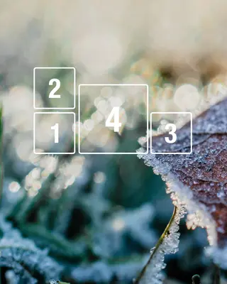 Close-up of frosted grass and a leaf with numbered sections overlay.