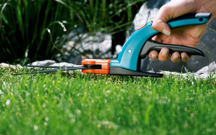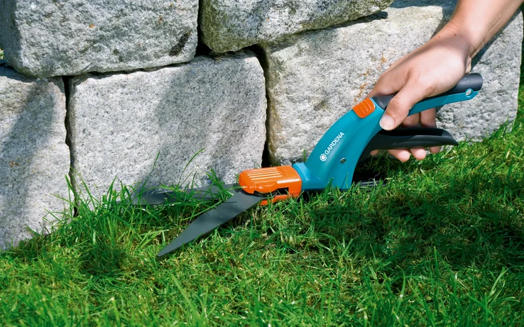 Kääntyvät GARDENA Comfort -ruohosakset mahdollistavat nurmikon reunojen helpon ja tarkan leikkaamisen. Ne ulottuvat helposti pihan hankaliinkin paikkoihin. 360 astetta kääntyvät terät mahdollistavat vaivattoman työskentelyn sekä vasen- että oikeakätisille. Ergonomisesti muotoiltu pehmustettu kahva helpottaa leikkaamista. Tarttumattomiksi pinnoitetut aaltomaiset leikkausterät varmistavat tarkan ja yhtenäisen leikkaustuloksen. Erikoisterälaakeri takaa tasaisen ja tehokkaan leikkaamisen koko terän pituudella. Liukujalakset helpottavat terän ohjausta ja varmistavat tasaisen leikkauskorkeuden. Kätevän yhden käden lukituksen ansiosta ruohosakset voi lukita helposti ja nopeasti. Takuuaika on 25 vuotta.