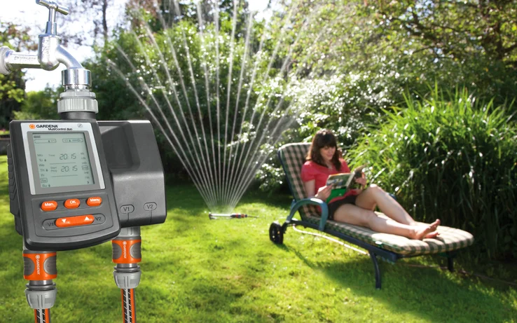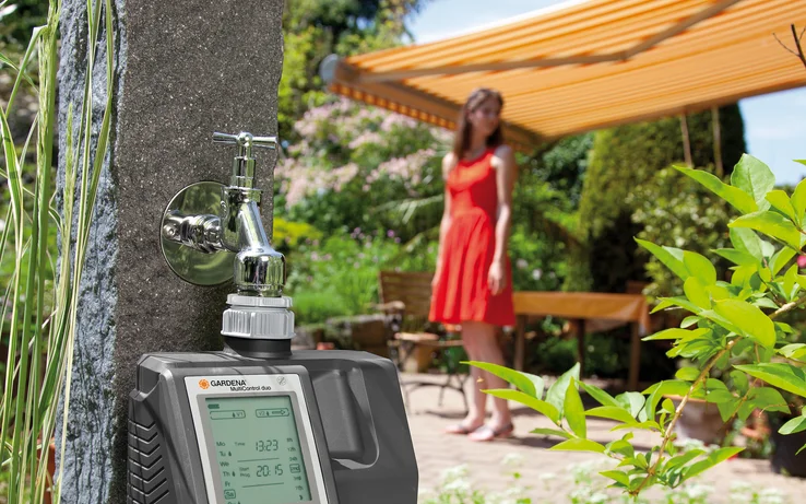 Le programmateur d'arrosage MultiControl duo GARDENA vous permet d'arroser deux zones différentes du jardin en même temps, même lorsque vous n'êtes pas chez vous. Arrosez votre pelouse avec un arroseur tandis que le parterre de fleurs est arrosé, par exemple, grâce aux deux sorties. Vous réglez individuellement l'arrosage indépendant et automatique des deux zones. Vous gagnez ainsi du temps et vos plantes reçoivent exactement la quantité d'eau dont elles ont besoin. À l'aide des cinq boutons, vous déterminez le début, la durée et l'intervalle de l'arrosage du jardin. Tout est clairement affiché sur le grand écran LCD du système d'arrosage de jardin. L'affichage du niveau de la batterie vous indique à tout moment si la batterie doit être remplacée. Pour une manipulation plus facile, vous prenez en main le panneau de commande détachable. Grâce à la technologie intégrée Safe Water Stop, une session d'arrosage programmée ne démarrera pas si le niveau de la batterie est faible. Cette fonction vous protège contre les fuites d'eau incontrôlées. Afin d'arroser vos plantes de manière encore plus efficace et en fonction de vos besoins, vous pouvez utiliser la sonde d'humidité du sol GARDENA disponible séparément. En fonction de l'humidité du sol, le capteur détermine si un arrosage est nécessaire. Le programmateur d'arroage MultiControl Duo est un produit de qualité fabriqué en Allemagne.