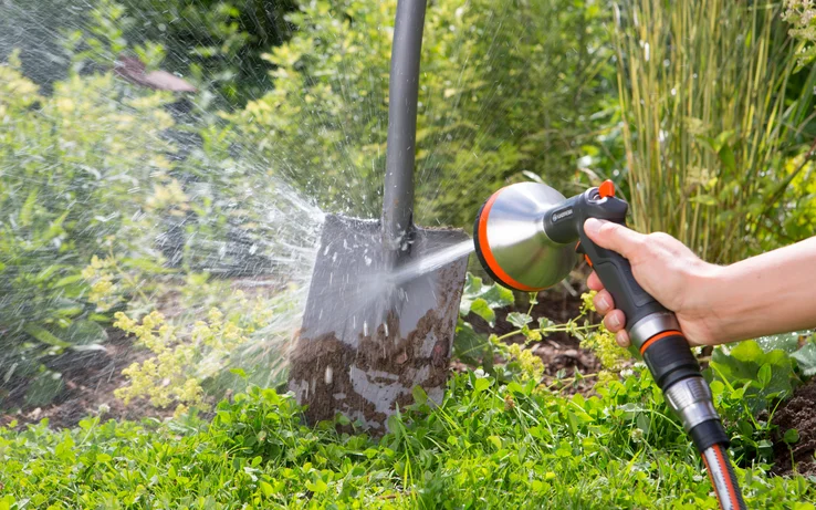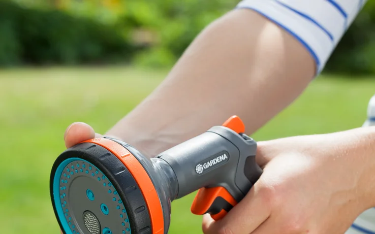 GARDENA Premium višenamjenski tuš za sve poslove navodnjavanja i čišćenja s izborom pet različitih načina raspršivanja vode od blagog prskanja, kapljičnog mlaza do punog, plosnatog mlaza za učinkovito čišćenje te uklanjanje tvrdokorne prljavštine. Glava i priključak tuša izrađeni su od metala i stoga izuzetno izdržljivi. Mekane plastične komponente štite glavu tuša od oštećenja. Ergonomsko oblikovana ručka s mekanim plastičnim elementima osigurava maksimalnu udobnost tijekom korištenja. Mogućnosti namještanja mlaza vode su beskonačne. Zaključavanje okidača omogućuje neprekidno zalijevanje bez umaranja. Integrirani filter moguće izvaditi i oprati. Premium višenamjenski tuš ima integriranu zaštitu od smrzavanja.