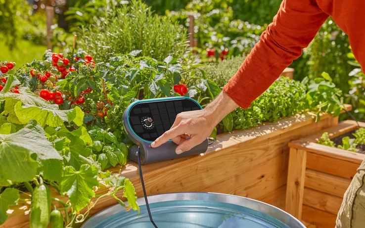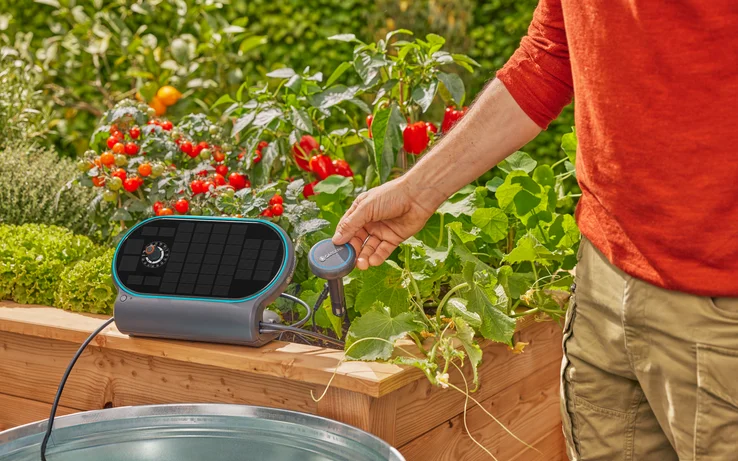 Jednostavna njega biljaka: GARDENA AquaBloom Set L za navodnjavanje bez slavine, napajanje solarnom energijom