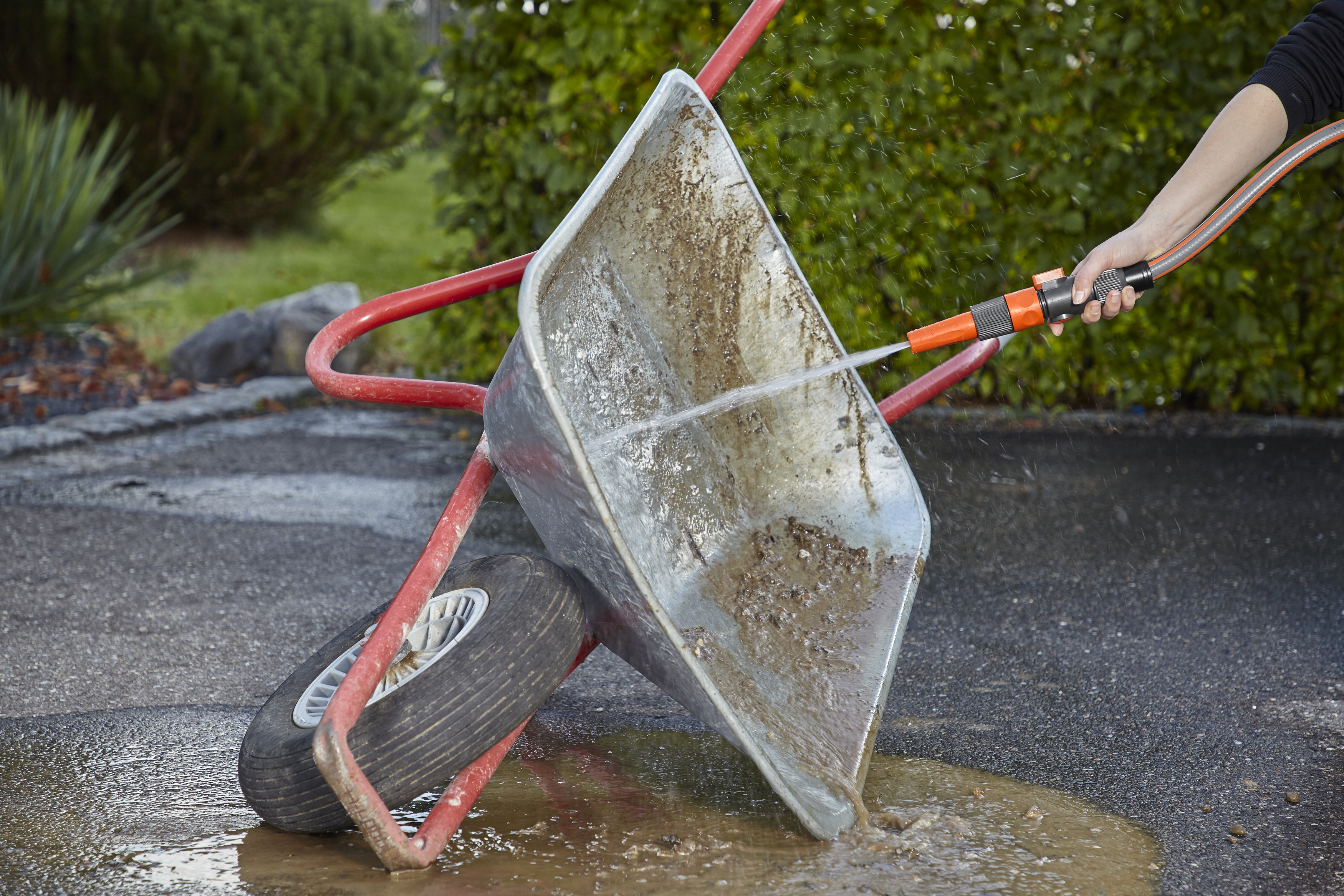 Prilagodljiva mlaznica za prskanje Profi System GARDENA idealna je za priključivanje duljih crijeva ili za upotrebu s pumpama. Upotrebljava se kao priključak na Profi System. Ovaj uređaj omogućuje protjecanje velikih količina vode. Mlaznica je izrađena od mesinga. Beskonačne mogućnosti namještanja vodenog mlaza, od snažnog mlaza do fine izmaglice. Protok vode može se prekinuti.