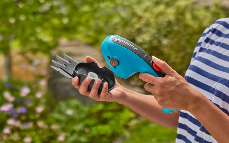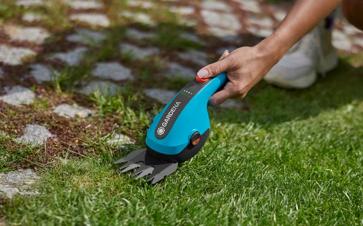 GARDENA škare za travu ClassicCut Li set pomažu vam u preciznom rezanju rubova travnjaka i postizanju lijepo njegovanog oblika za male grmove poput šimšira. Set uključuje nož za travu širine 8 cm, kotače i teleskopsku dršku. Oštrica je precizno brušena i premazana neljepljivim premazom za dugotrajnu oštrinu. Osigurava točan, gladak i čist rez. Nož za travu je kvalitetan proizvod proizveden u Njemačkoj. Zahvaljujući tankom dizajnu i ergonomskoj ručki, škare udobno leže u vašoj ruci i lako ih je voditi po tlu. Teleskopska drška ima ergonomski rukohvat i fleksibilno je podesiva između 74 i 96 cm. Možete ju prilagoditi svojoj visini za udoban, uspravan položaj tijekom rada. Potpuno napunjena baterija škara za travu traje oko 50 minuta. LED indikator pokazuje status punjenja. Možete puniti GARDENA škare za travu ClassicCut Li set s priloženim USB-C kabelom. Ako želite promijeniti oštricu, možete to učiniti brzo i jednostavno pritiskom na gumb. Zasebno dostupna oštrica za grmlje (art. br. 9863-20) pretvara ClassicCut Li u škare za grmlje. Strast koju pokreće GARDENA. Baterijska vrtna oprema koja vam daje slobodu stvaranja.
