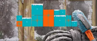 Decorative element with snow-covered gift boxes in a winter setting.