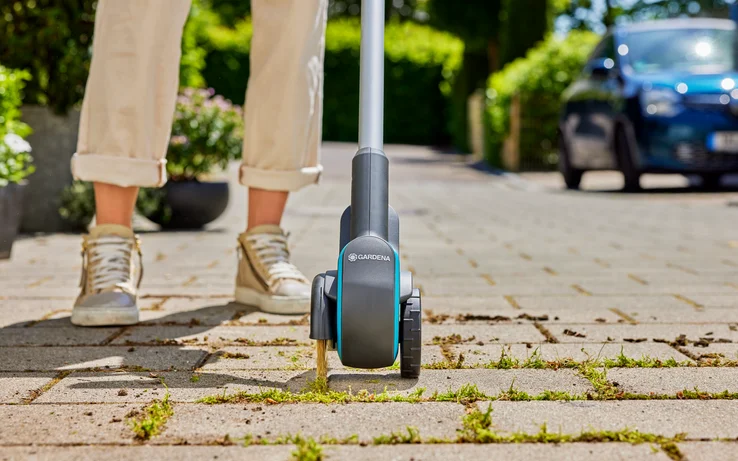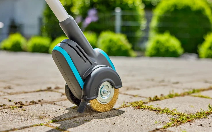 Until now, removing weeds from joints has been a tedious and uncomfortable task, either by bending over and straining your back or by using harsh chemicals. The innovative GARDENA Battery Weed Brush EasyWeed 1800/18V P4A is an outstanding performer, offering precise cleaning at the touch of a button. The set comes without battery and charger.