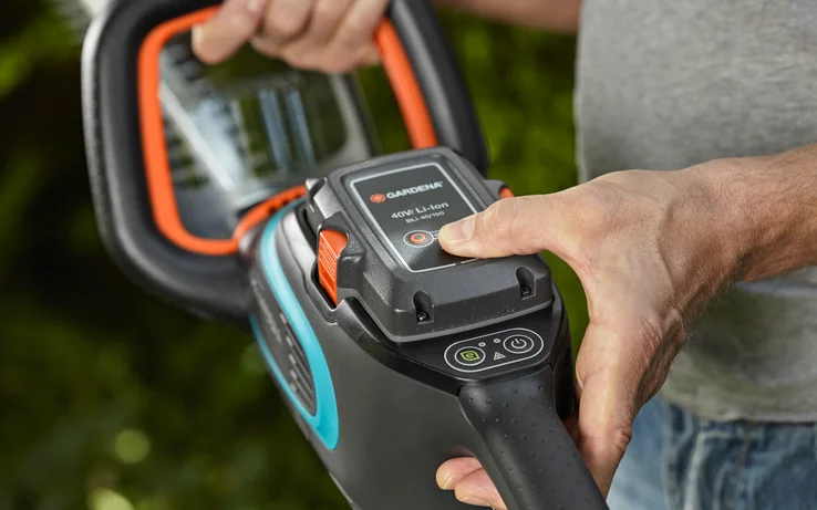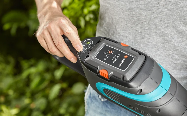 The powerful GARDENA Battery Hedge Trimmer PowerCut Li-40/60 is designed for the cable-free, convenient trimming of large hedges. The surrounding ErgoLine handle is comfortable to hold in any cutting position and is easy to operate. Optimised blade geometry ensures efficient, quick and clean cutting. An intuitive key panel on the handle ensures highest operating comfort. The set includes battery and charger. The hedge trimmer is powered by an easy-care GARDENA System Battery with 40 V* and 2.6 Ah. The battery can be quickly recharged at any time without memory effect. *The maximum output voltage without load is 40 V, the nominal voltage 36 V.