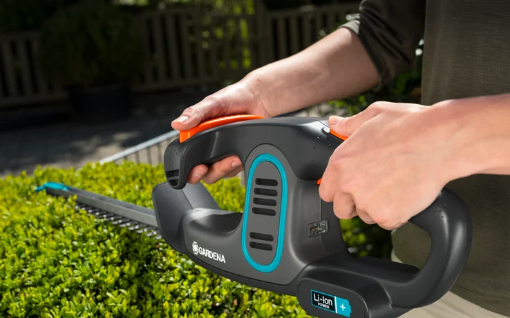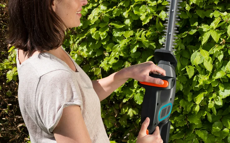 The lightweight battery-powered Hedge Trimmer for easy trimming of small hedges