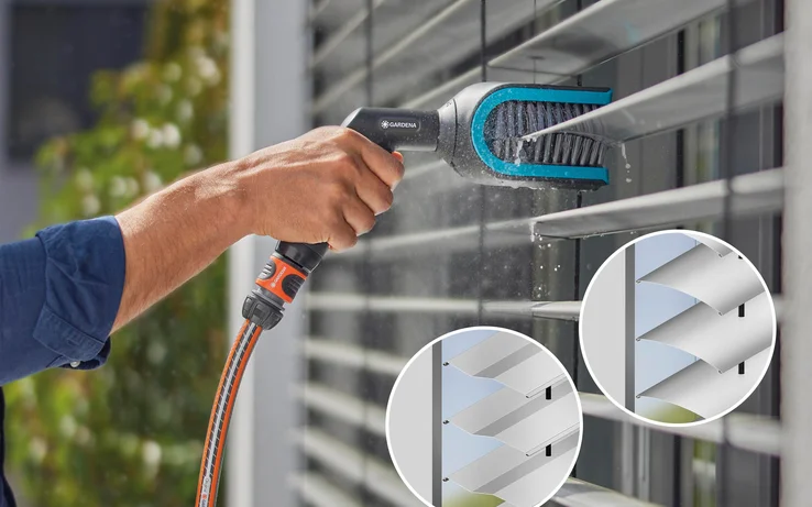 With the GARDENA Blind Brush for the garden hose, cleaning the slats of blinds and shutters is quicker and more thorough than ever before.
