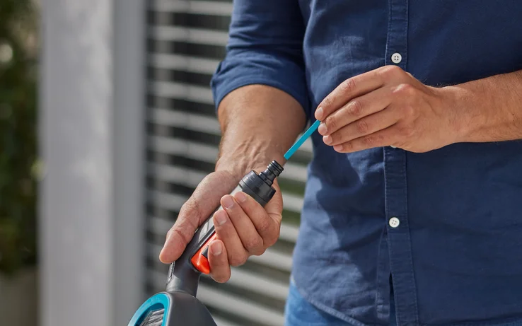 The GARDENA Cleaning Sticks (Art. 18852) makes cleaning window blinds even easier. After removing the filter on the cleaner, the rods can be inserted into the water connector on the connection nipple. The soap is mixed directly with water and distributed on the slats as an ideal cleaning solution. This combination restores the slats to their former splendour.